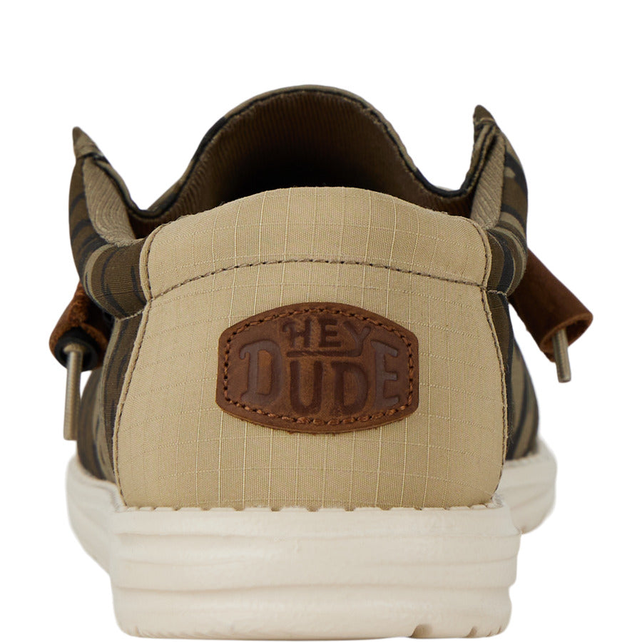 Calling all outdoors enthusiasts C the HEYDUDE x Mossy Oak Wally has arrived. Light. soft and comfy as ever. up your post-adventure footwear game with Mossy Oak’s legendary Bottomland camo pattern. This collab is as natural as it gets.